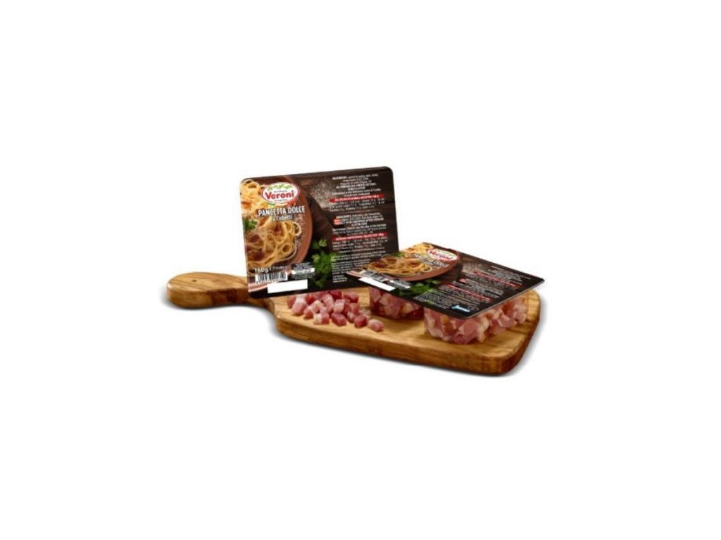Veroni Pancetta Dolce Cubetti je tradiční italská pancetta (sladká vepřová slanina) nakrájená na malé kostičky a připravená k okamžitému použití. Díky jemné, lehce slané chuti a kvalitnímu zpracování z pečlivě vybraného vepřového bůčku je ideální do klasických italských receptů, jako je amatriciana, carbonara, těstovinové omáčky, polévky, rizota nebo dušená jídla.